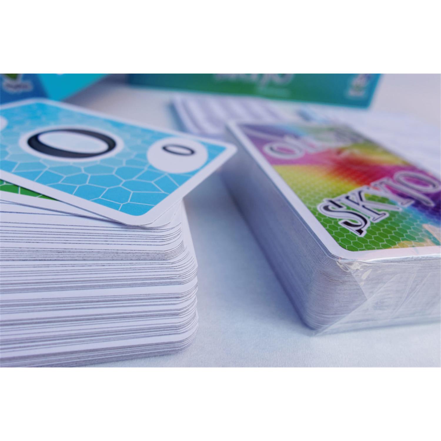SKYJO – So heißt das neue spannende Kartenspiel aus dem Hause Magilano, das spaßige Unterhaltung für viele Spieleabende verspricht. Beim Kartenspiel SKYJO geht es darum, über mehrere Spielrunden möglichst wenige Punkte zu sammeln. Denn am Ende jeder Spielrunde werden bei jedem Spieler die Punkte gezählt und zu seinem bisherigen Punktestand hinzuaddiert. Sobald ein Spieler 100 oder mehr Punkte erreicht hat, endet das Spiel und der Spieler mit der niedrigsten Punktezahl gewinnt das Spiel. Wenig Punkte zu sammeln bedeutet, Ausschau nach Karten mit möglichst kleinen und wenn möglich sogar negativen Zahlen zu halten. Weitere Spannung kommt in das Spiel durch einige Sonderregeln, durch die zum Beispiel gleich mehrere Karten (und damit Punkte) entfernt werden können – dies kann zu überraschenden Wendungen führen. Dies motiviert zu waghalsigen Manövern, die auch schon mal nach hinten losgehen können, wenn andere Mitspieler ihre Karten schneller als geplant aufdecken können.
