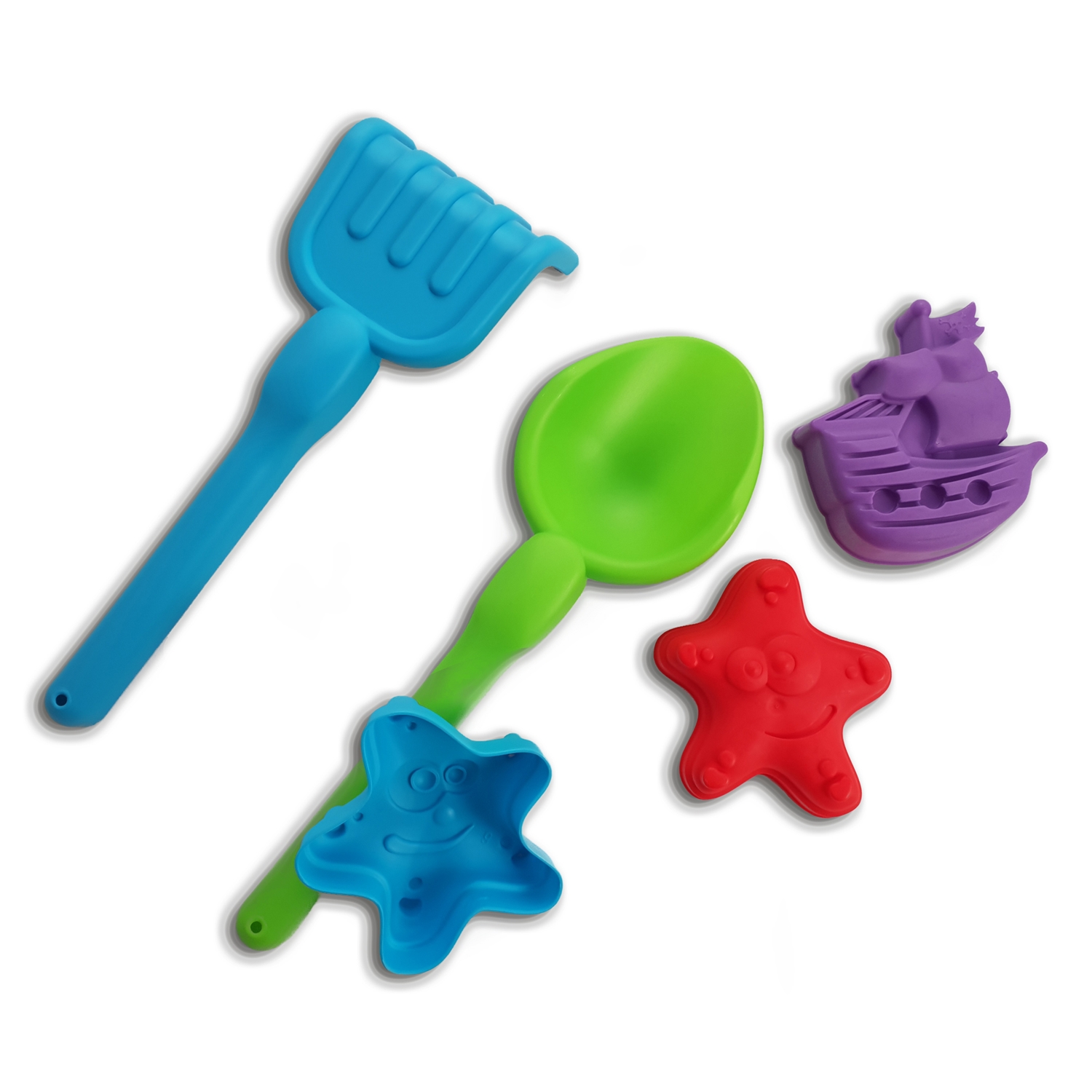 Sandkasten Burg mit Rechen und Formen