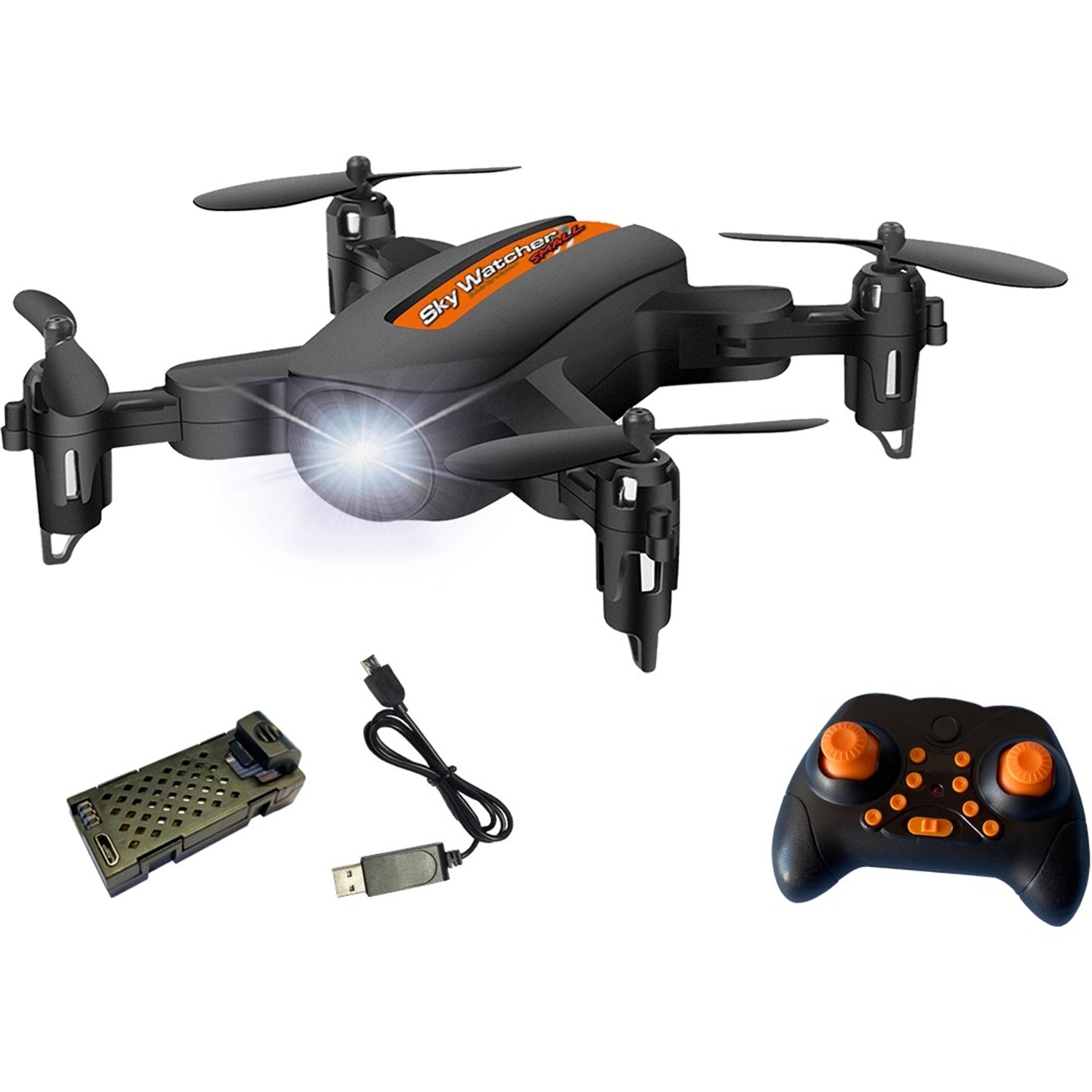 Der DF Models SkyWatcher SMALL ist eine faltbare Drohne mit Start- und Landeautomatik sowie einer Höhenstabilisierung (hält die vorgegebene Flughöhe selbständig), die das Fliegen zum Kinderspiel macht. Dank der einklappbaren Arme lässt sich das Modell platzsparend unterbringen. Ausgestattet mit einem leistungsstarken LiPo Akku bietet die Drohne eine Flugzeit von bis zu 8 Minuten und wird mit einem USB-Ladekabel aufgeladen.